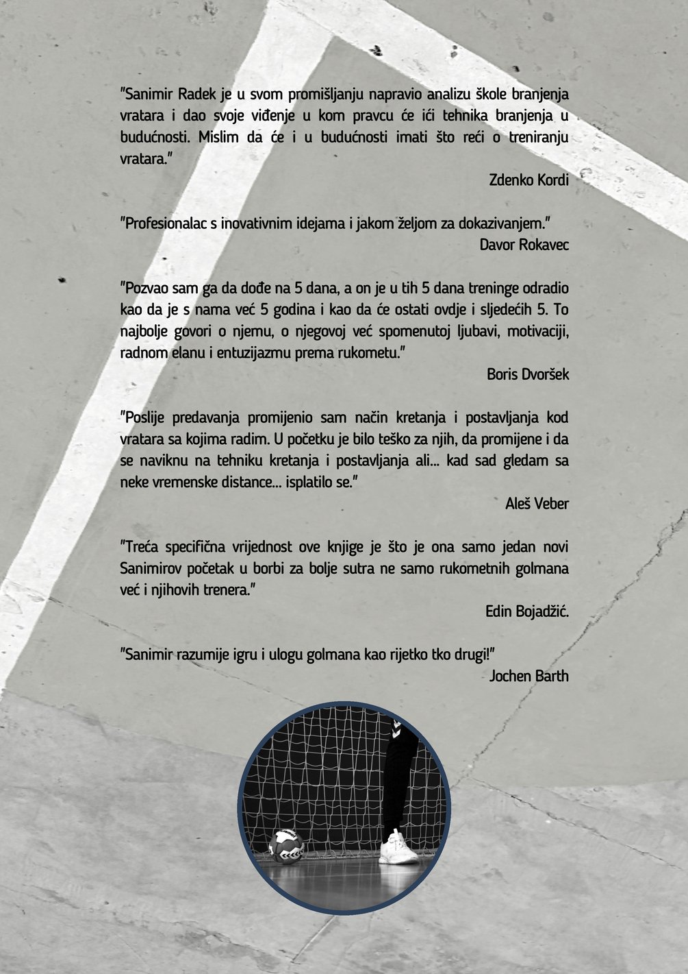 U knjizi možete pročitati gdje se trenutno nalaze rukometni golmani sa naših prostora po uspješnosti u usporedbi sa najboljim golmanima svijeta, te što i kako bi trebali raditi sa golmanima kako bi ih vratili u svjetski vrh gdje i pripadaju.