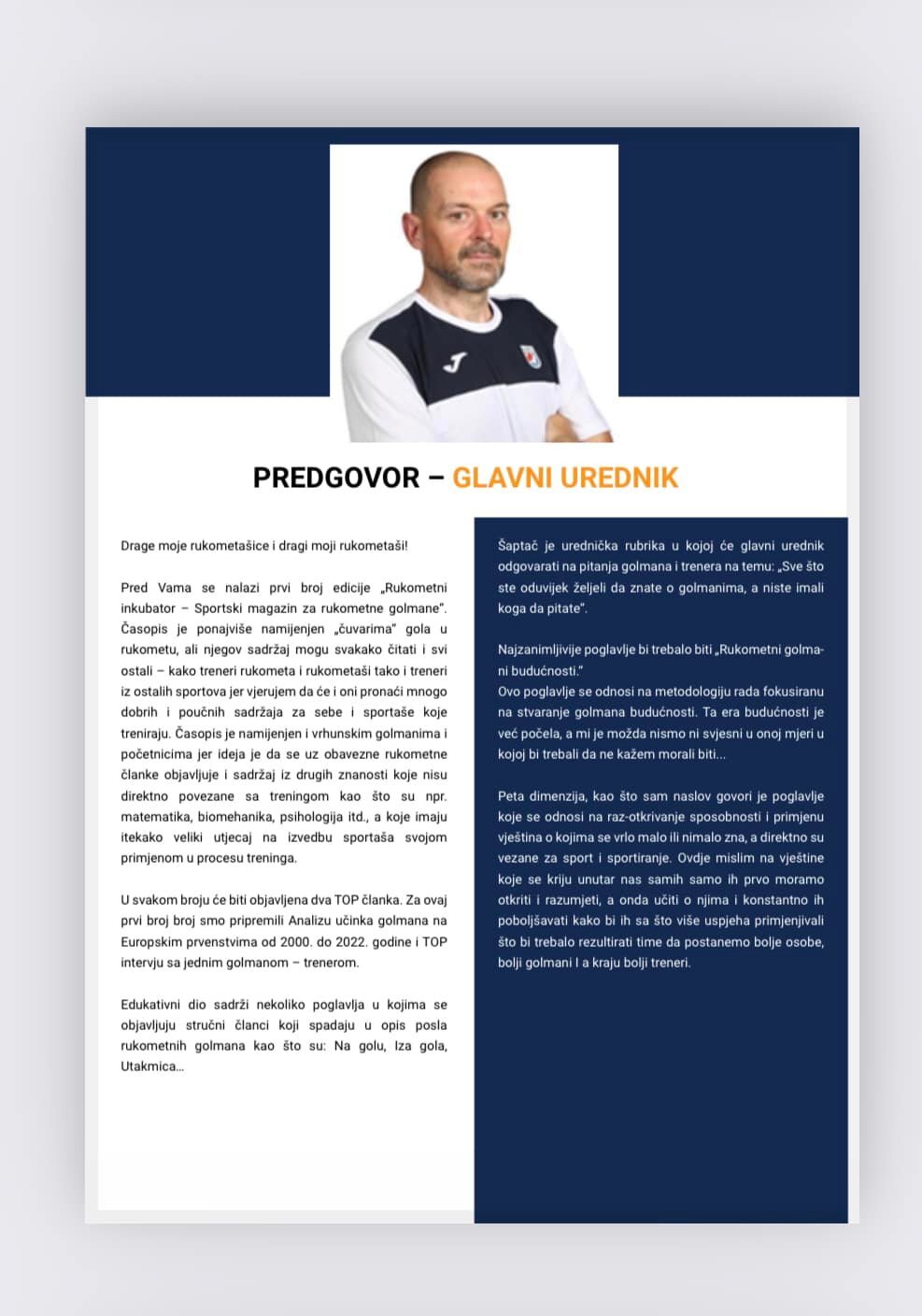 Edukativni časopis za rukometne golmane, trenere golmana i rukometne trenere