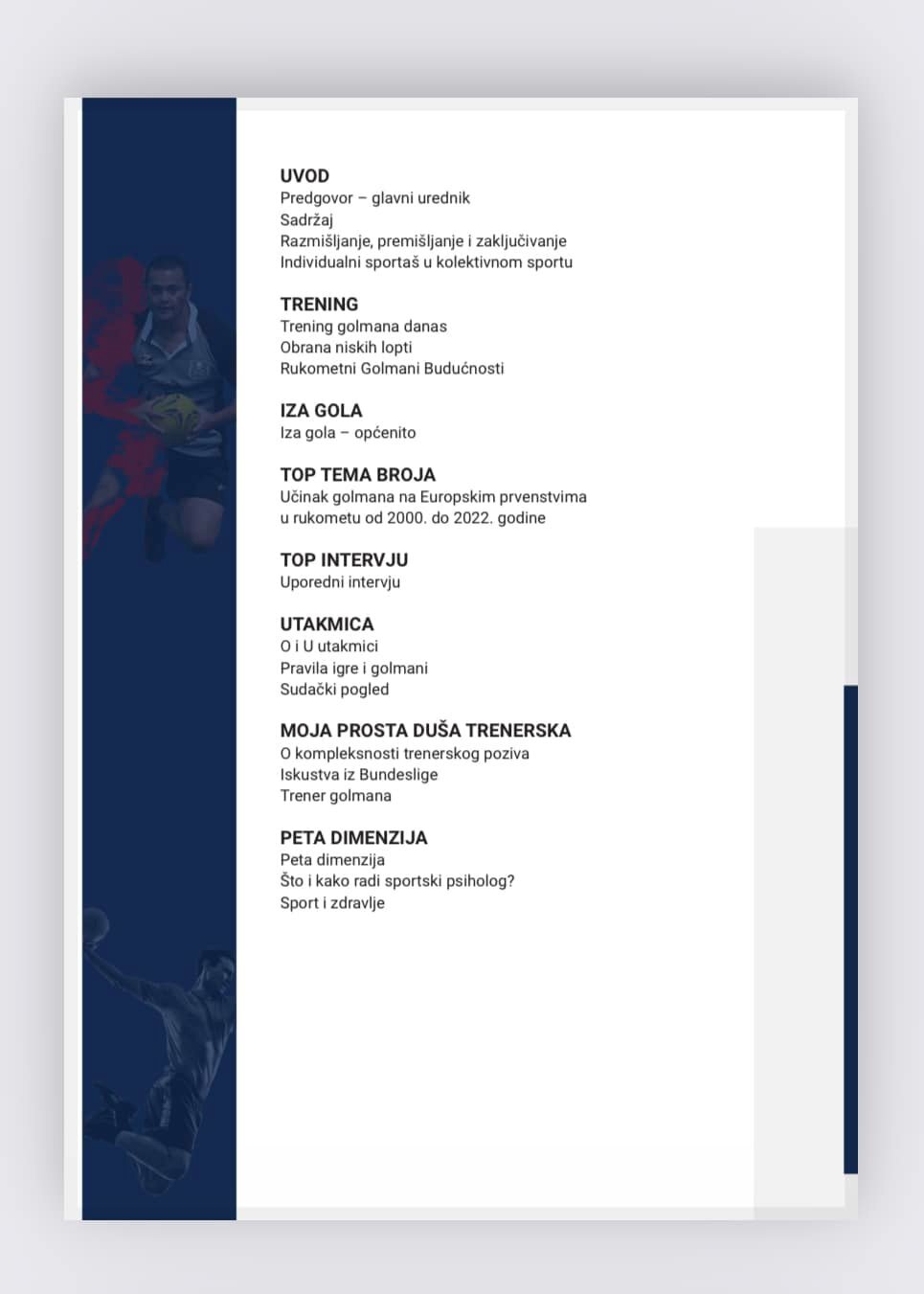 Prvi specijalizirani edukativni časopis namijenjen prvenstveno rukometnim golmanima svih dobnih kategorija od amatera do profesionalaca.